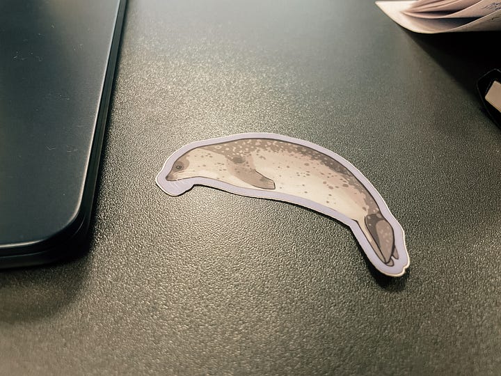Receiving a super cute seal sticker from a scientist who just came from California to teach some lectures during this week and we connected right away.